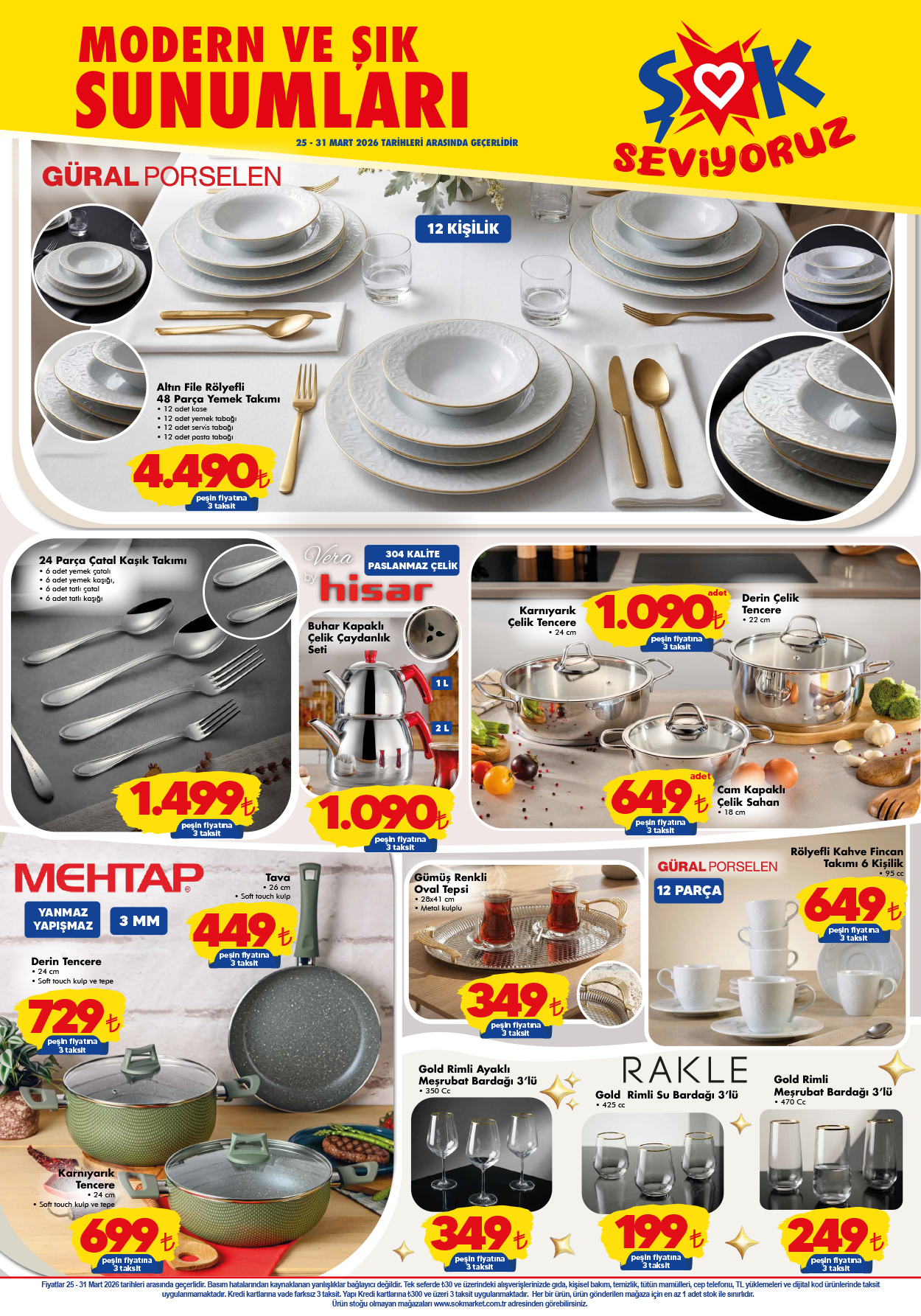 Bu hafta ŞOK Marketler’de harika fırsatlar sizleri bekliyor! 25-31 Mart 2026 tarihleri arasında geçerli olan yeni aktüel ürünler kataloğu, dikkat çekici fiyatlarıyla alışveriş tutkunlarını heyecanlandırıyor. Mutfak gereçlerinden elektronik eşyalara kadar geniş bir ürün yelpazesi sunan bu katalogda, özellikle 4.490 TL’lik 48 parça yemek takımı ve 59 TL’lik ampul dikkat çekiyor. Mutlaka göz atın!