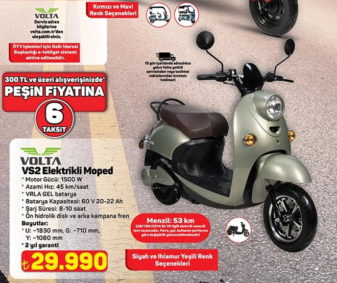 Volta VS2 Elektrikli Moped Satış Fiyatı: 5.499 TL