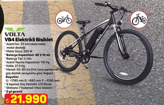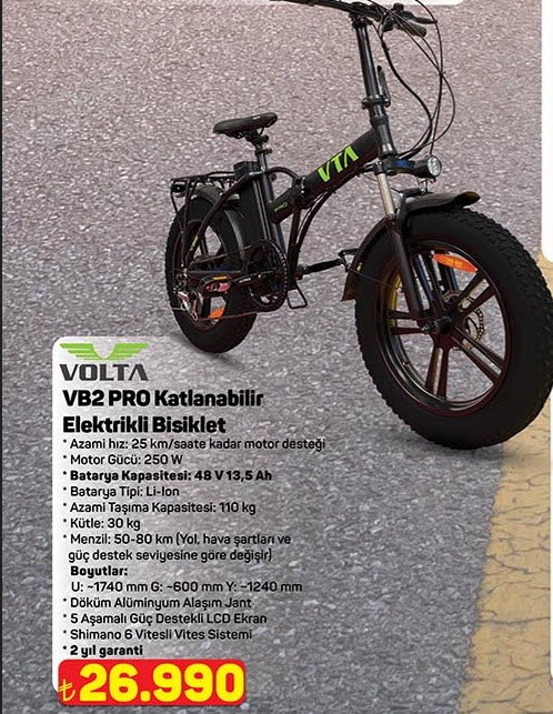 Volta VB2 Pro Elektrikli Bisiklet Satış Fiyatı: 3.999 TL