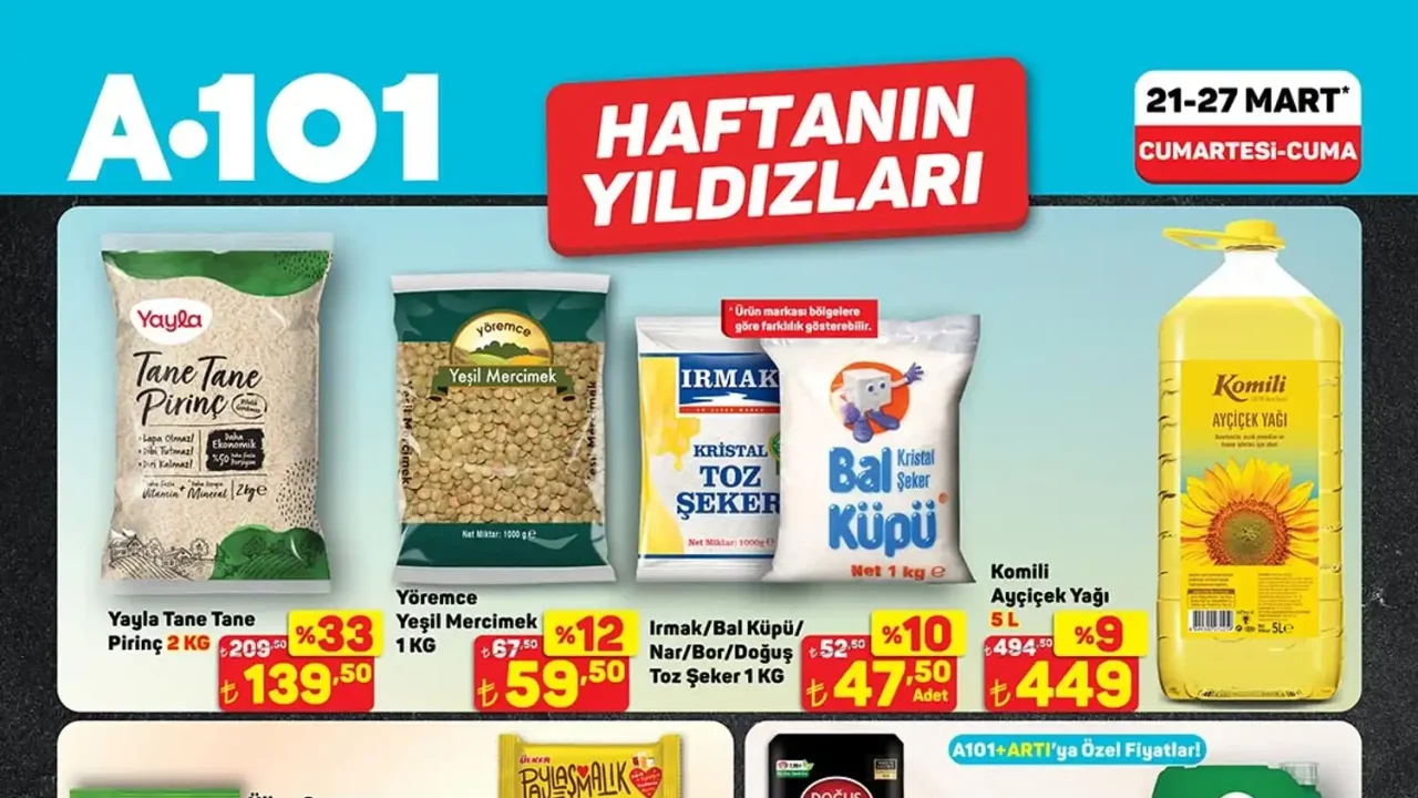 Bu hafta harika fırsatlar var! A101 21 27 Mart 2026 hafta sonu kataloğu nihayet açıklandı ve sizleri unutulmaz indirimlerle dolu bir alışveriş deneyimi bekliyor. Dört farklı ürün sayfası ve 7 ekstra avantaj sayfasıyla, bu kampanya döneminde mutfağınızı ve bütçenizi şenlendirecek fırsatları kaçırmayın!