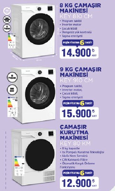 BİM 25 Mart 2026 Kataloğunun bir diğer dikkat çeken bölümü çamaşır makineleri ve kurutma makineleri: