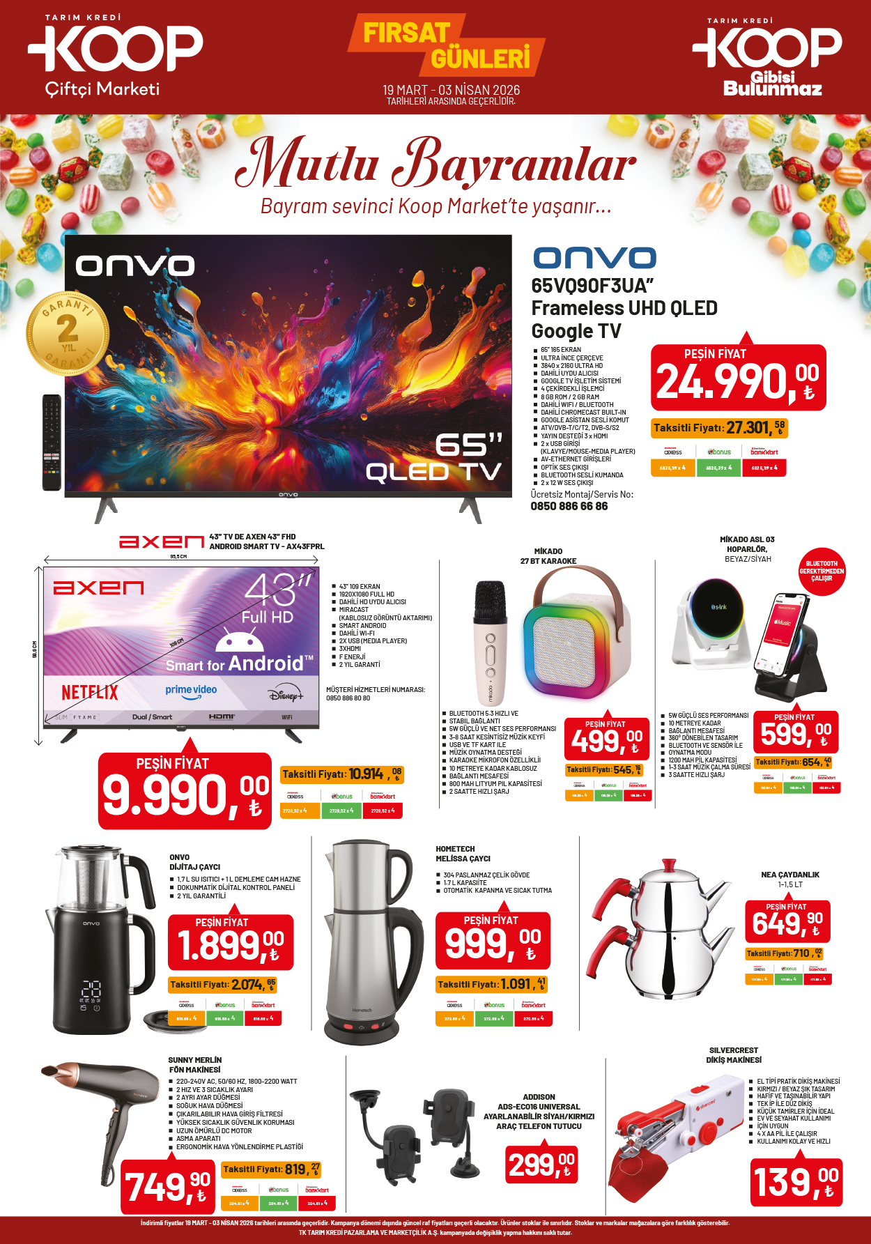 - ONVO 65” QLED Google TV – 1.299 TL